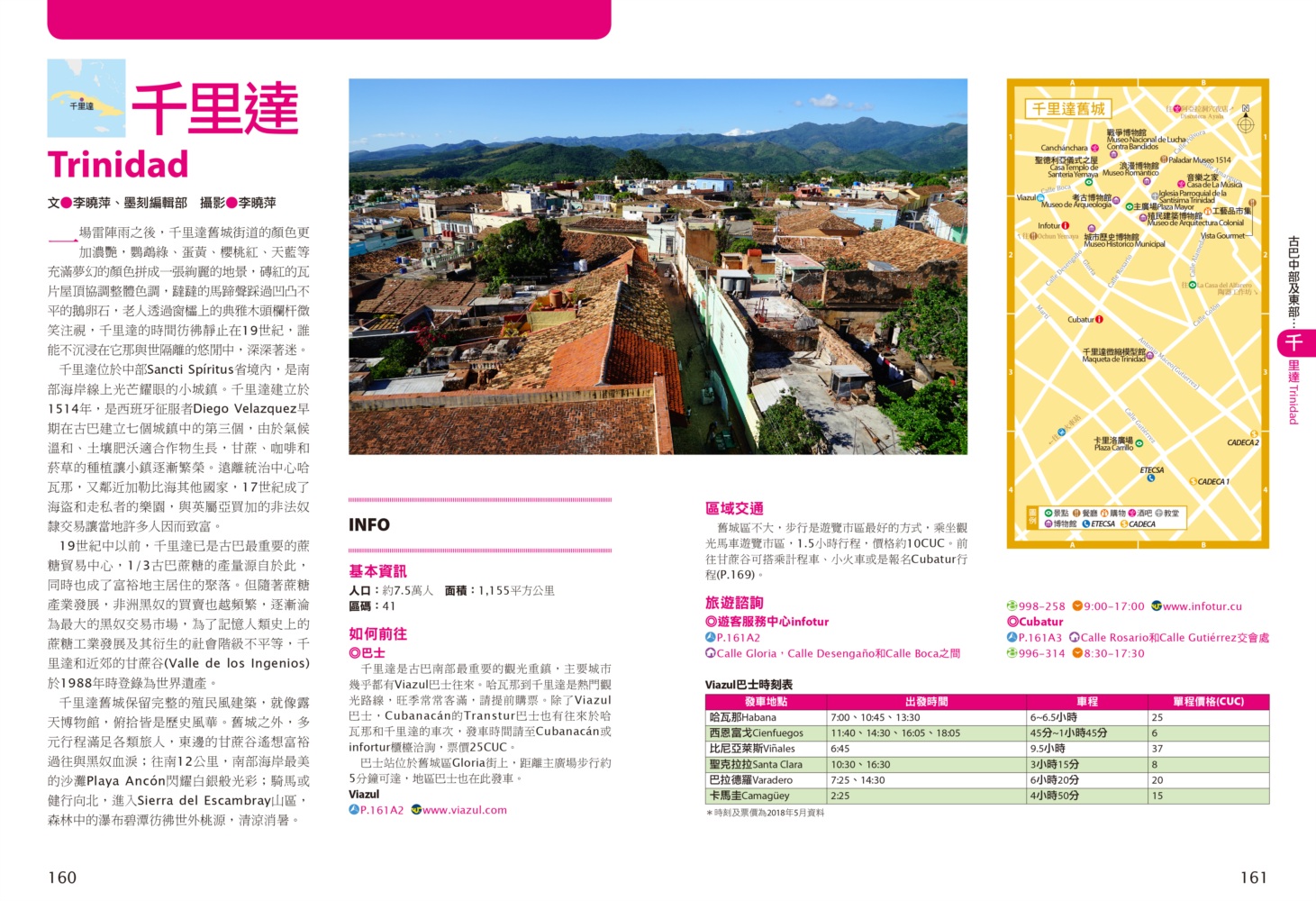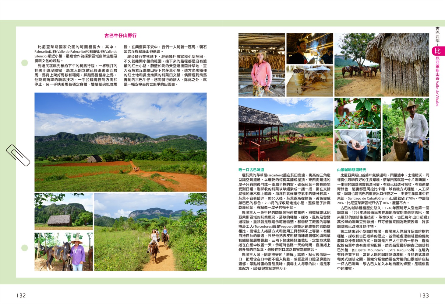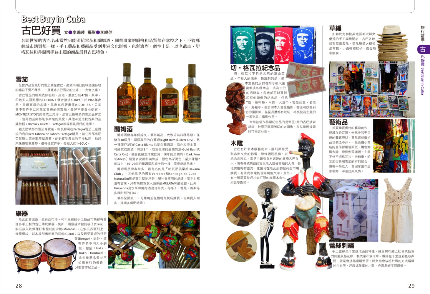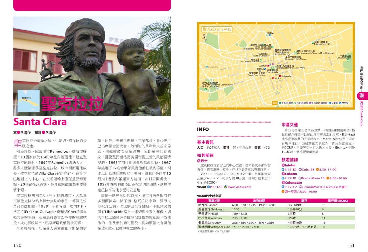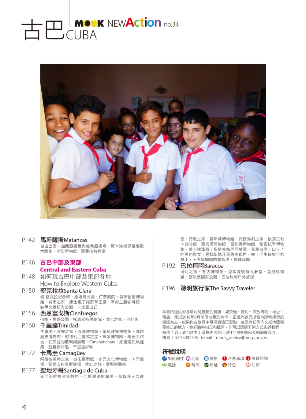 P.006 歡迎來到古巴Welcome to Cuba P.008 古巴全圖Map of Cuba P.011 旅行計畫Plan Your Trip P.012 古巴之最Top Highlights of Cuba P.022 古巴精選行程Top Itineraries of Cuba P.024 最佳旅行時刻When to go P.026 古巴好味Best Taste in Cuba P.028 古巴好買Best Buy in Cuba P.030 古巴交通攻略Transportation in Cuba P.035 古巴百科Cuba Encyclopedia P.036 古巴簡史History of Cuba P.038 世界遺產World Heritages of Cuba P.041 蔗糖與蘭姆酒Sugar cane & Rum P.048 菸草與雪茄Tabaco P.053 音樂與舞蹈Music & Dance P.060 當一天拉風老爺Vintage Car P.065 這裏是古巴!This is Cuba P.079 分區導覽Area Guide P.080 古巴西部Western Cuba P.082 如何玩古巴西部各地How to Explore Western Cuba P.084 哈瓦那La Habana 教堂廣場、哈瓦那大教堂、隆畢優官邸&阿科斯侯爵官邸、殖民時期工藝博物館、衛弗列多‧藍藝術中心、軍事廣場、市立博物館、塞昆多卡布官邸、皇軍城堡、小神殿、Farmacia Taquechel傳統藥局、主教街、商人街、聖芳濟廣場、聖芳濟大教堂、蘭姆酒博物館、Casa de Carmen Montilla 藝廊、哈瓦那全景館、古巴攝影博物館、紙牌博物館、哈瓦那歌劇院、舊國會大廈、中央公園、普拉多大道、革命博物館、國立貝拉斯美術館、聖薩爾瓦多·德拉蓬塔城堡、馬雷貢濱海大道、帕塔加斯雪茄工廠、華人街、哥倫布公墓、何塞・馬蒂紀念塔、革命廣場、哈瓦那大學、弗斯特之家、卡巴那城堡、莫羅城堡、兩個世界飯店、維吉亞山莊、柯西瑪漁村、柏迪奇達酒吧、佛羅里達酒吧、吃住買在哈瓦那、博物館潛規則、伊莎貝拉夫人、廢墟裡的哈瓦那人、芭蕾教母阿隆索 P.123 比尼亞萊斯山谷Valle de Viñales 比尼亞萊斯市區、La Casa del Veguero菸草農莊、茉莉花飯店、印第安岩洞、史前壁畫、聖米格爾洞、來去鄉下住一晚、古巴牛仔山野行、綠色古巴-生態村與有機農耕P.132 巴拉德羅Varadero 安布羅西奧洞穴、市立博物館、強森公園、天堂海灘放空假期P.136 馬坦薩斯Matanzas 自由公園、加西亞鐵橋與維希亞廣場、聖卡洛斯保羅麥歐大教堂、消防博物館、蒙賽拉特教堂 P.140 古巴中部及東部Central and Eastern Cuba P.142 如何玩古巴中部及東部各地How to Explore Western Cuba P.144 聖克拉拉Santa Clara 切・格瓦拉紀念碑、維達爾公園、仁慈劇院、裝飾藝術博物館、城市之家、康士坦丁諾菸草工廠、革命主題咖啡館、裝甲火車紀念公園、卡比羅山丘 P.150 西恩富戈斯Cienfuegos 何塞‧馬蒂公園、托馬斯特里劇院、文化之家、巴列宮 P.154 千里達Trinidad 主廣場、音樂之家、浪漫博物館、殖民建築博物館、城市歷史博物館、聖德利亞儀式之屋、戰爭博物館、陶器工作坊、甘蔗谷的繁榮與黑暗、Canchánchara、細讀殖民風建築、鼓聲與吟唱、千里達好味 P.165 卡馬圭 Camagüey 阿格拉蒙特之家、城市模型館、多元文化博物館、卡門廣場、聖胡安狄奧斯廣場、水缸之城、廣場與藝術 P.170 聖地牙哥Santiago de Cuba 狄亞哥維拉奎斯故居、西斯佩德斯廣場、聖母升天大教堂、詩歌之家、嘉年華博物館、荷西馬利之家、依莎貝利卡咖啡館、蘭姆酒博物館、百加得博物館、秘密抗爭博物館、蒙卡達軍營、聖伊菲熱尼亞墓園、莫羅城堡、山丘上的黑色聖女、尋找聖地牙哥最美視角、樂士浮生錄與不朽樂手、王者與蝙蝠的蘭姆酒、關達那美拉 P.184 巴拉柯阿Baracoa 可可之家、考古博物館、亞松森聖母大教堂、亞歷杭德羅‧德洪堡國家公園、巴拉科阿戶外旅程 P.188 聰明旅行家The Savvy Traveler