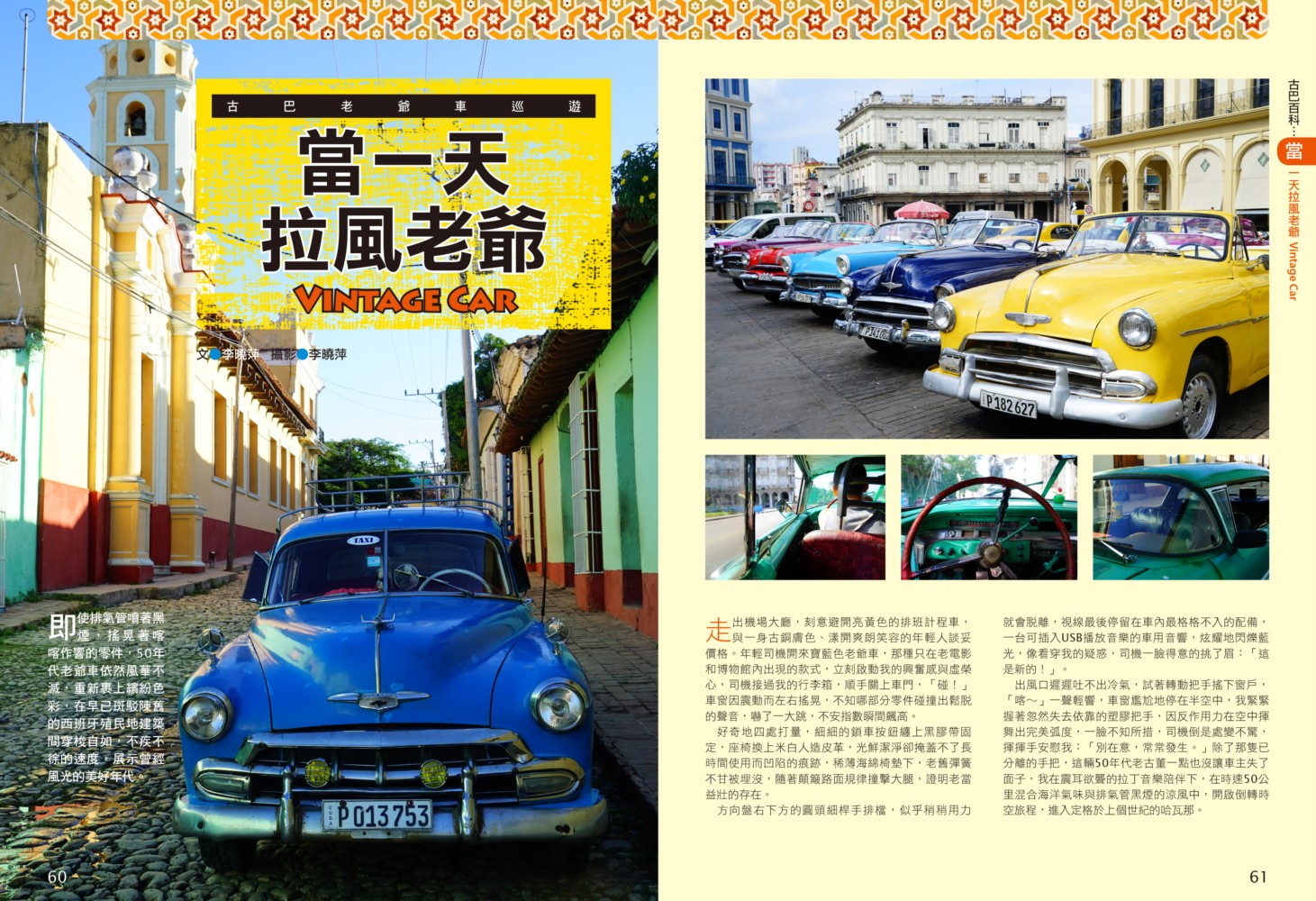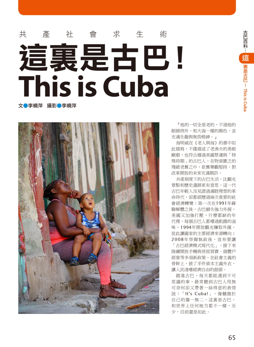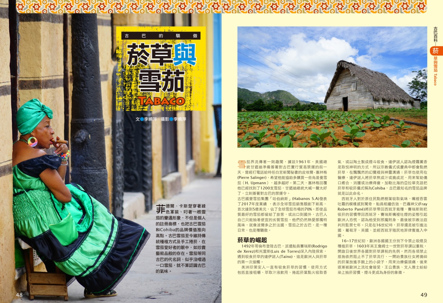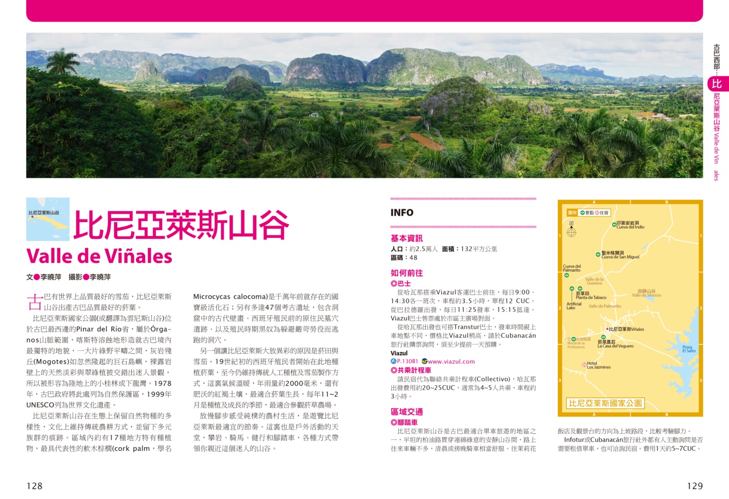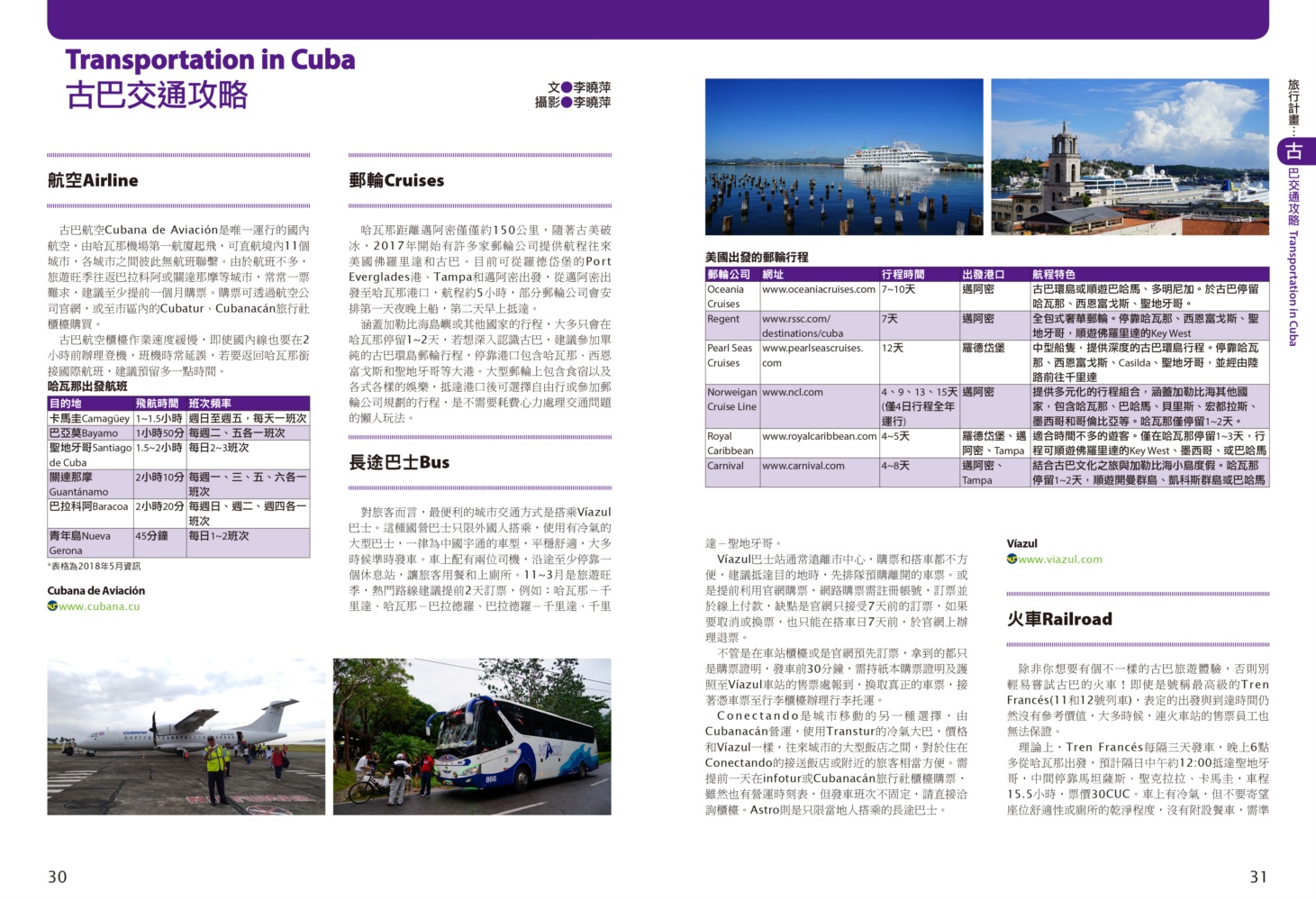 P.006 歡迎來到古巴Welcome to Cuba P.008 古巴全圖Map of Cuba P.011 旅行計畫Plan Your Trip P.012 古巴之最Top Highlights of Cuba P.022 古巴精選行程Top Itineraries of Cuba P.024 最佳旅行時刻When to go P.026 古巴好味Best Taste in Cuba P.028 古巴好買Best Buy in Cuba P.030 古巴交通攻略Transportation in Cuba P.035 古巴百科Cuba Encyclopedia P.036 古巴簡史History of Cuba P.038 世界遺產World Heritages of Cuba P.041 蔗糖與蘭姆酒Sugar cane & Rum P.048 菸草與雪茄Tabaco P.053 音樂與舞蹈Music & Dance P.060 當一天拉風老爺Vintage Car P.065 這裏是古巴!This is Cuba P.079 分區導覽Area Guide P.080 古巴西部Western Cuba P.082 如何玩古巴西部各地How to Explore Western Cuba P.084 哈瓦那La Habana 教堂廣場、哈瓦那大教堂、隆畢優官邸&阿科斯侯爵官邸、殖民時期工藝博物館、衛弗列多‧藍藝術中心、軍事廣場、市立博物館、塞昆多卡布官邸、皇軍城堡、小神殿、Farmacia Taquechel傳統藥局、主教街、商人街、聖芳濟廣場、聖芳濟大教堂、蘭姆酒博物館、Casa de Carmen Montilla 藝廊、哈瓦那全景館、古巴攝影博物館、紙牌博物館、哈瓦那歌劇院、舊國會大廈、中央公園、普拉多大道、革命博物館、國立貝拉斯美術館、聖薩爾瓦多·德拉蓬塔城堡、馬雷貢濱海大道、帕塔加斯雪茄工廠、華人街、哥倫布公墓、何塞・馬蒂紀念塔、革命廣場、哈瓦那大學、弗斯特之家、卡巴那城堡、莫羅城堡、兩個世界飯店、維吉亞山莊、柯西瑪漁村、柏迪奇達酒吧、佛羅里達酒吧、吃住買在哈瓦那、博物館潛規則、伊莎貝拉夫人、廢墟裡的哈瓦那人、芭蕾教母阿隆索 P.123 比尼亞萊斯山谷Valle de Viñales 比尼亞萊斯市區、La Casa del Veguero菸草農莊、茉莉花飯店、印第安岩洞、史前壁畫、聖米格爾洞、來去鄉下住一晚、古巴牛仔山野行、綠色古巴-生態村與有機農耕P.132 巴拉德羅Varadero 安布羅西奧洞穴、市立博物館、強森公園、天堂海灘放空假期P.136 馬坦薩斯Matanzas 自由公園、加西亞鐵橋與維希亞廣場、聖卡洛斯保羅麥歐大教堂、消防博物館、蒙賽拉特教堂 P.140 古巴中部及東部Central and Eastern Cuba P.142 如何玩古巴中部及東部各地How to Explore Western Cuba P.144 聖克拉拉Santa Clara 切・格瓦拉紀念碑、維達爾公園、仁慈劇院、裝飾藝術博物館、城市之家、康士坦丁諾菸草工廠、革命主題咖啡館、裝甲火車紀念公園、卡比羅山丘 P.150 西恩富戈斯Cienfuegos 何塞‧馬蒂公園、托馬斯特里劇院、文化之家、巴列宮 P.154 千里達Trinidad 主廣場、音樂之家、浪漫博物館、殖民建築博物館、城市歷史博物館、聖德利亞儀式之屋、戰爭博物館、陶器工作坊、甘蔗谷的繁榮與黑暗、Canchánchara、細讀殖民風建築、鼓聲與吟唱、千里達好味 P.165 卡馬圭 Camagüey 阿格拉蒙特之家、城市模型館、多元文化博物館、卡門廣場、聖胡安狄奧斯廣場、水缸之城、廣場與藝術 P.170 聖地牙哥Santiago de Cuba 狄亞哥維拉奎斯故居、西斯佩德斯廣場、聖母升天大教堂、詩歌之家、嘉年華博物館、荷西馬利之家、依莎貝利卡咖啡館、蘭姆酒博物館、百加得博物館、秘密抗爭博物館、蒙卡達軍營、聖伊菲熱尼亞墓園、莫羅城堡、山丘上的黑色聖女、尋找聖地牙哥最美視角、樂士浮生錄與不朽樂手、王者與蝙蝠的蘭姆酒、關達那美拉 P.184 巴拉柯阿Baracoa 可可之家、考古博物館、亞松森聖母大教堂、亞歷杭德羅‧德洪堡國家公園、巴拉科阿戶外旅程 P.188 聰明旅行家The Savvy Traveler