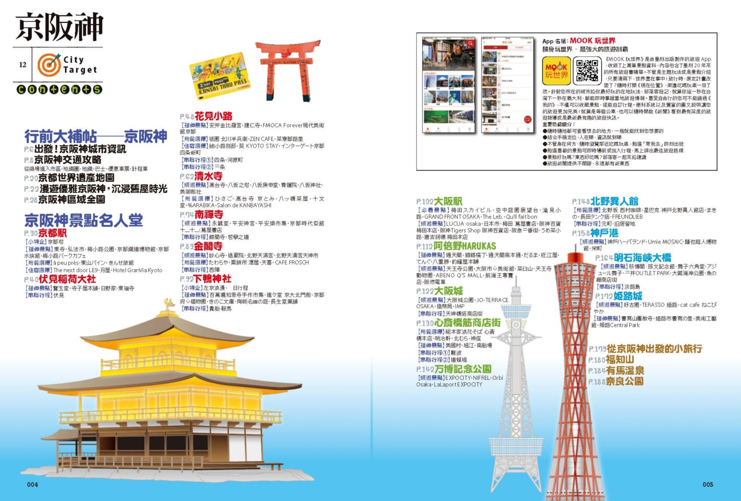 ◎京阪神旅遊資訊 出發!京阪神城市資訊 京阪神交通攻略 從機場進入市區‧地鐵圖‧地鐵‧巴士‧優惠車票‧計程車 京阪神區域全圖 ◎京阪神精選特企 京都世界遺產地圖 漫遊優雅京阪神,沉浸舊屋時光 ◎精選三大分區《京都、大阪、神戶》 《京都》 京都駅 伏見稻荷大社 花見小路 清水寺 南禪寺 金閣寺 下鴨神社 《大阪》 大阪駅 阿倍野HARUKAS 大阪城 心斎橋筋商店街 万博記念公園 《神戶》 北野異人館 神戶港 明石海峽大橋 姬路城 ◎出走京阪神,輕鬆近郊小旅行 福知山 有馬溫泉 奈良公園