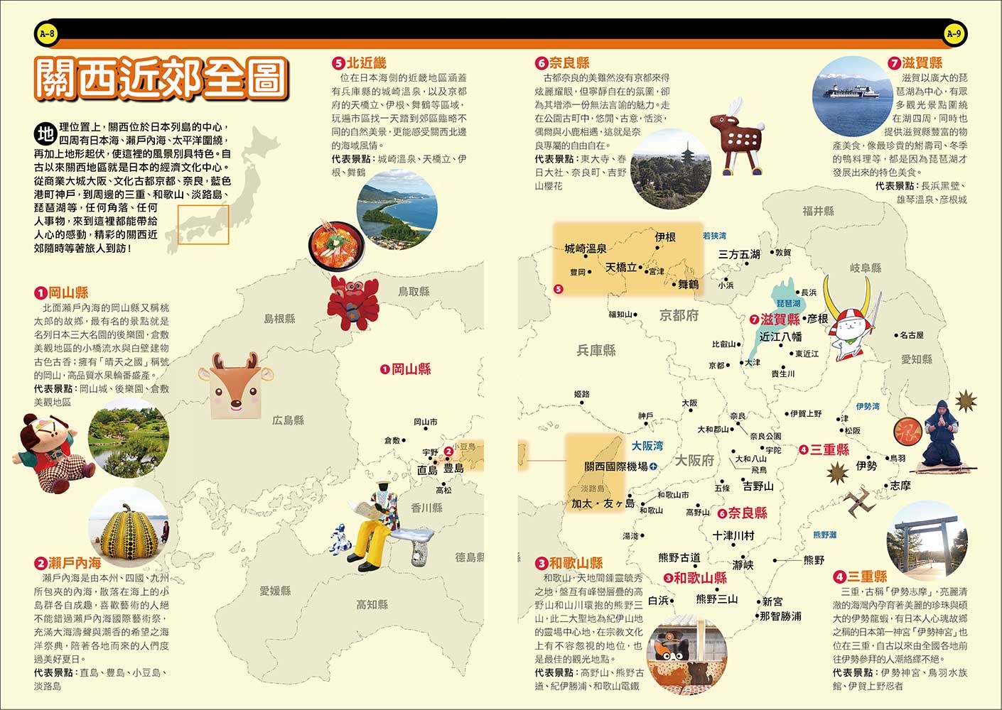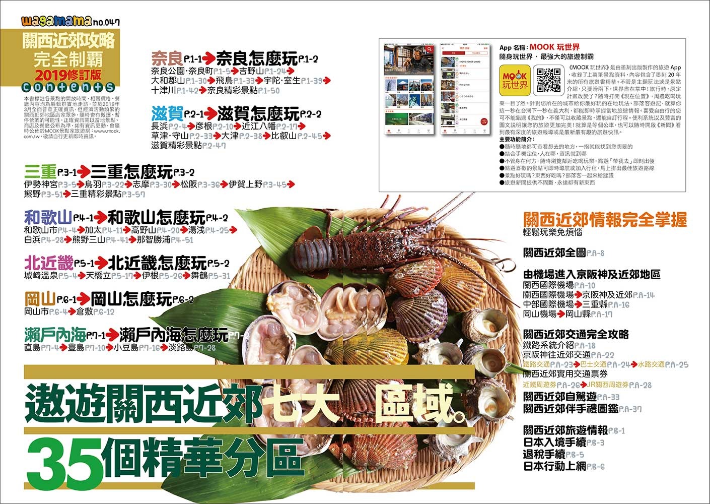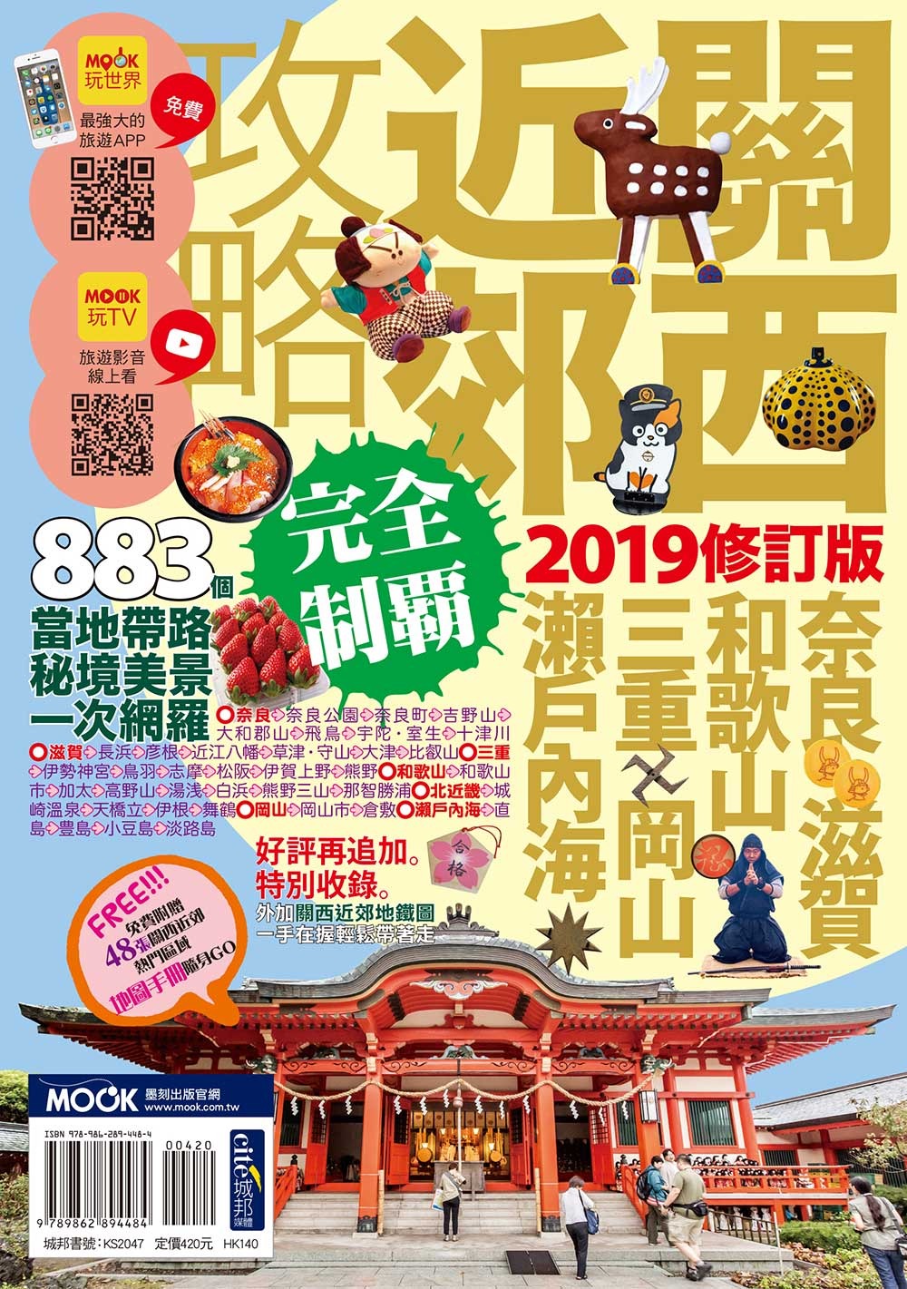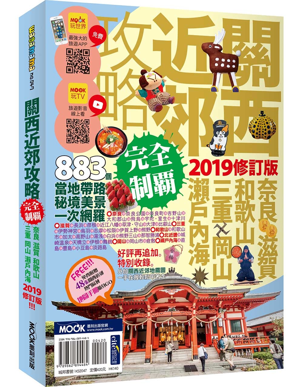 走出京阪神! !關西近郊攻略完全制霸2019年最新版! 關西近郊攻略完全制霸,全面普查,更新資訊,給你最完整、最豐富、最正確的精彩景點! [比Google還好用地圖冊]★32頁全彩地圖別冊 隨書附上精緻地圖別冊,詳細標記各地區景點與店家,讓你輕易精選想去的地方與安排行程。 ★[收錄關西近郊熱門景點] 七大區域,35個精華分區:奈良、滋賀、三重、和歌山、北近畿、岡山、瀨戶內海,吃喝玩美無一遺漏! ★搜集近千個景點與店家 本書集結各地景點與店家詳細資料完全普查更新,並且完整收錄各地必訪名所、媒體與網路推薦的人氣店家、新開幕的美食名店等。 ★秒懂關西近郊交通圈 如何從關西國際機場進入近郊各地區?搭乘地鐵有哪些轉乘小技巧?這本書解決煩惱的交通問題,一手掌握自己的旅遊路線。 ★旅遊TIPS 如何安排旅遊行程?該買什麼類型的周遊券?幫你規劃小旅行,順著玩更好玩!詳細分析關西各路周遊票券,推薦CP值超高各式票券! ★日本生活豆知識 日本人人一台腳踏車?「不好意思」、「麻煩你了」常掛嘴邊?發掘日本的日常習慣與生活冷知識,日本人習以為常的行為舉動與文化民情,卻令我們驚呼不可思議。