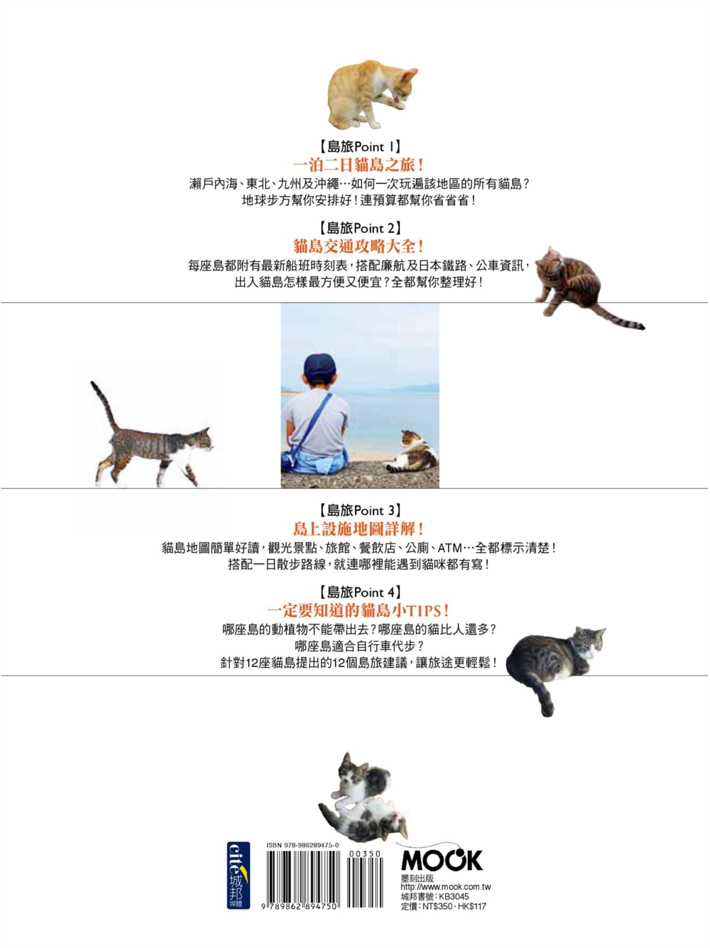 東北、瀨戶內海、九洲、沖繩── 這個假期就來一趟貓島之旅吧! 一時吸貓一時爽,一直吸貓一直爽! 廣大貓奴們假期也想沉浸在充滿貓的時光裡嗎?那就千萬不能錯過日本號稱貓比人多的12座貓島! 可以拍到飛天貓的佐柳島、貓咪多到不知道該把腳放哪的青島、可以順便欣賞瀨戶內藝術祭的男木島、被貓咪佔領的小小廢墟島池島、獲選為「世界五大貓景」的田代島與相島…就連台灣人最愛去的度假勝地沖繩也有貓島可以玩! 由日本歷史最悠久、背包客最推薦的編輯團隊「地球步方編集室」親上貓島採訪,憑藉著對貓的熱情,往返分布在日本各處的貓島,不只地毯式蒐羅當地觀光景點、餐飲住宿、公廁、ATM及交通方式等,連島上居民對貓咪的態度、貓咪對遊客的親近度都詳實紀載!搭配大量可愛貓咪照片,隔著紙面都能感受到毛茸茸的魅力!其中還有曾登上電視節目與網路話題的人氣偶像貓呢~ !!!關於這本書!!! ★分區介紹12座貓島,一次可以玩不只一座島。 ★收錄最新船班資訊,搭配廉航及日本鐵路、公車資訊出入最方便。 ★貓島地圖清楚好讀,第一次去也不怕迷路。 ★一日環島路線,跟著走一定可以遇到貓! ★島上設施介紹,觀光景點、飲食、住宿、公廁及ATM都有寫。 ★島旅相關Q&A,從行前準備到島上旅遊,解絕所有疑難雜症! !!!關於貓島,不可不知!!! Q.什麼是貓島? A.因為奇蹟般的平衡而存在的日本「貓咪樂園」,島上常常是貓比人多的盛況。 Q.貓島會很難去嗎? A.其實一點都不難!!搭配廉航直飛鄰近城市,再轉陸上交通前往渡船口,接下的就只剩下等待開船了! Q.貓島怎麼玩? A.隨興的玩即可!如果沒有頭緒,本書也有安排好的一日散步行程,照著走完一圈,包準能把島上重點玩過一遍! Q.貓島有什麼要注意的嗎? A.各島有各島的注意事項,有些貓島歡迎餵食、有些則明令禁止,還有些島不能將島上動植物帶出去…本書針對12座貓島提出12個島旅建議及小趣聞,有了這些小tips,玩貓島可以更放心更有趣! Q.貓島除了貓還有其他好玩的嗎? A.本書收錄的12座貓島,除了可愛的貓咪以外也都各有特色!比如充滿廢墟美感的池島、度假勝地竹富島、藝術氣息濃厚的男木島…享受離島當地的寧靜日常,也是島旅的一大樂趣! 貓島給人的感覺,就像是懶洋洋的貓咪一樣,愜意、自在…就算沒有計畫也能說走就走! 下次休假如果放晴,不妨去一趟貓島,在時光靜靜流逝的小島上,用貓咪能量為心靈充電吧。