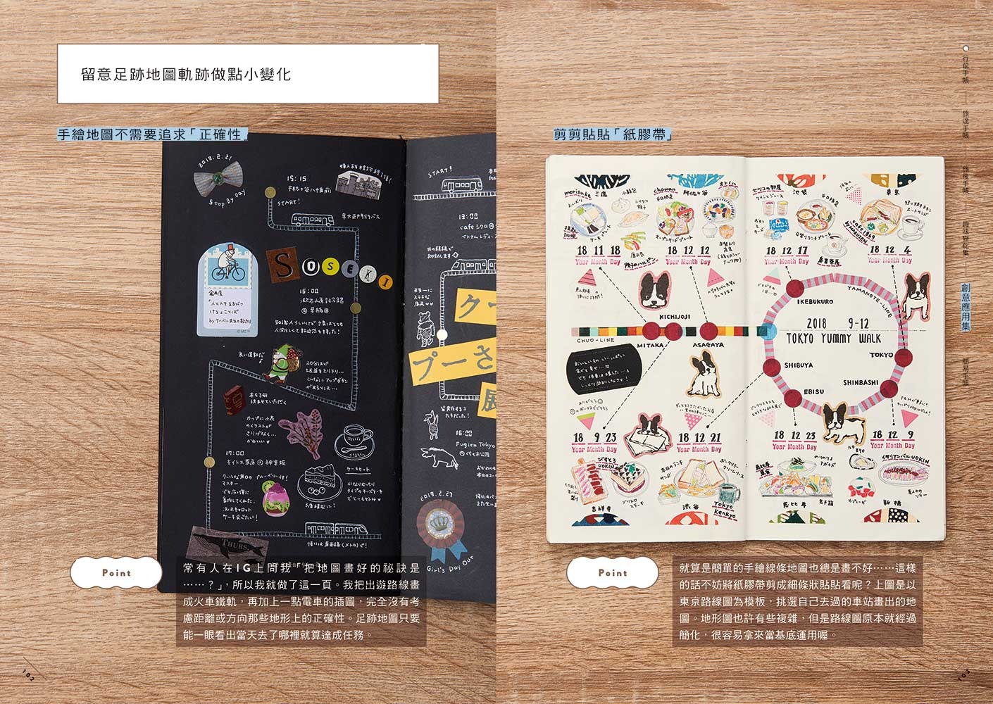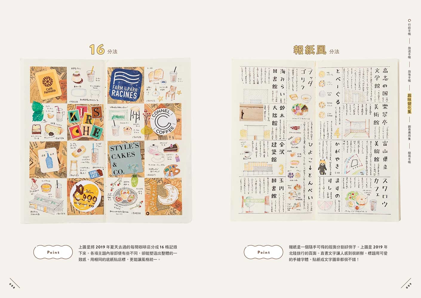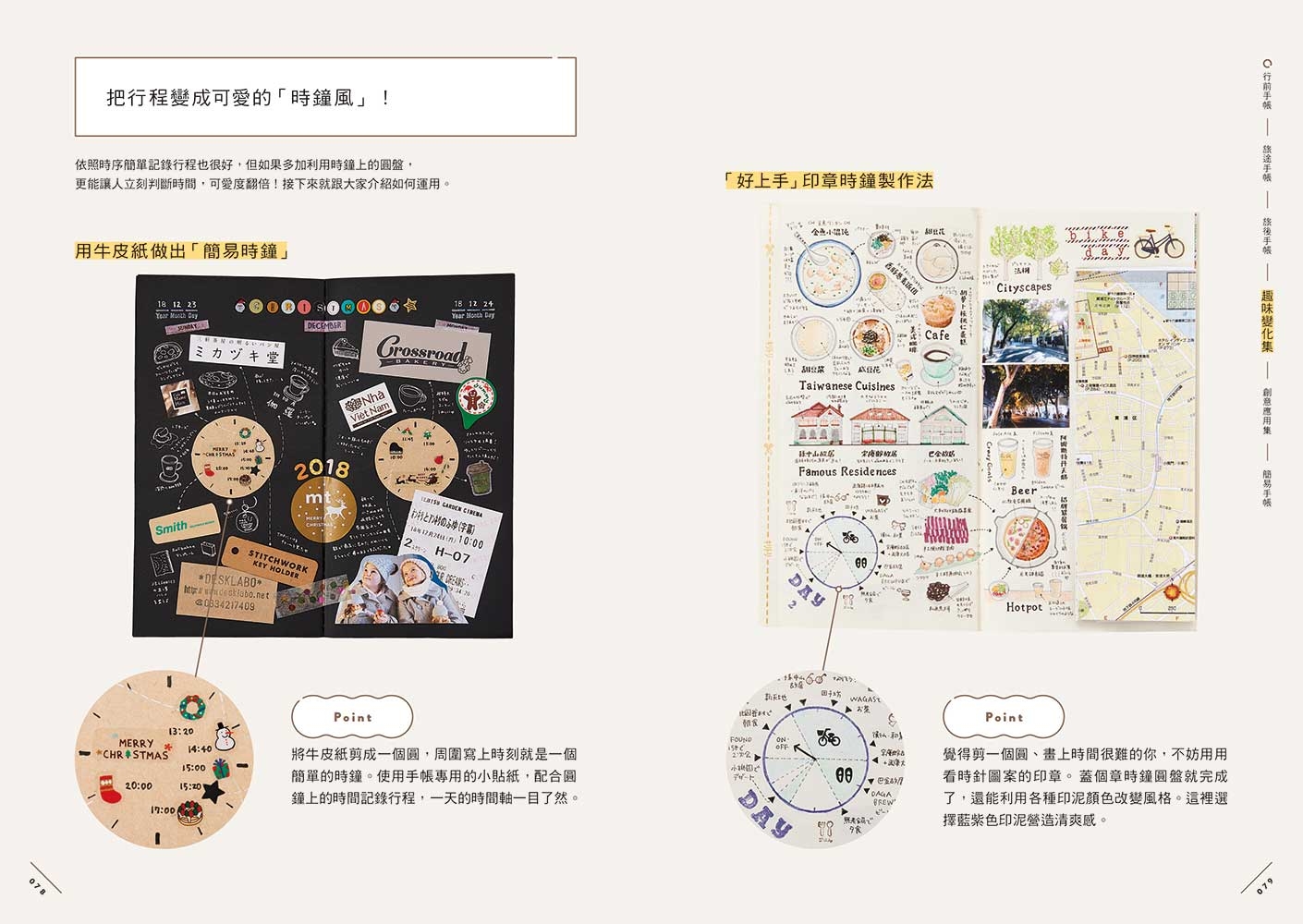 行程表用時鐘表現、信封收藏票券、多元排版技巧等等,美化手帳的種種妙招。