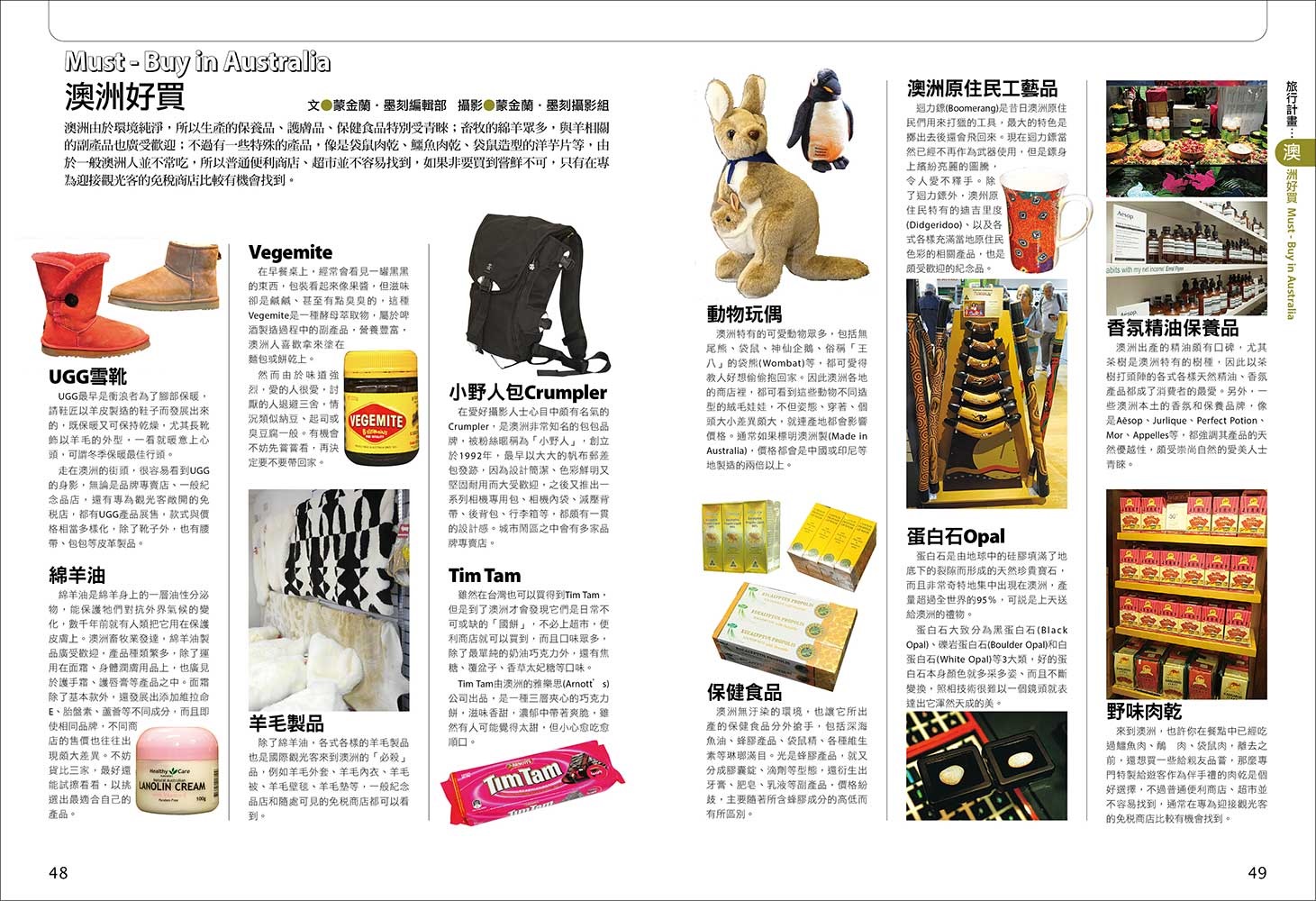 特別規劃的好味、好買、歷史、世界遺產、最佳旅行時刻等單元,提供讀者購物、美食、文化體驗等深度旅遊的好選擇。