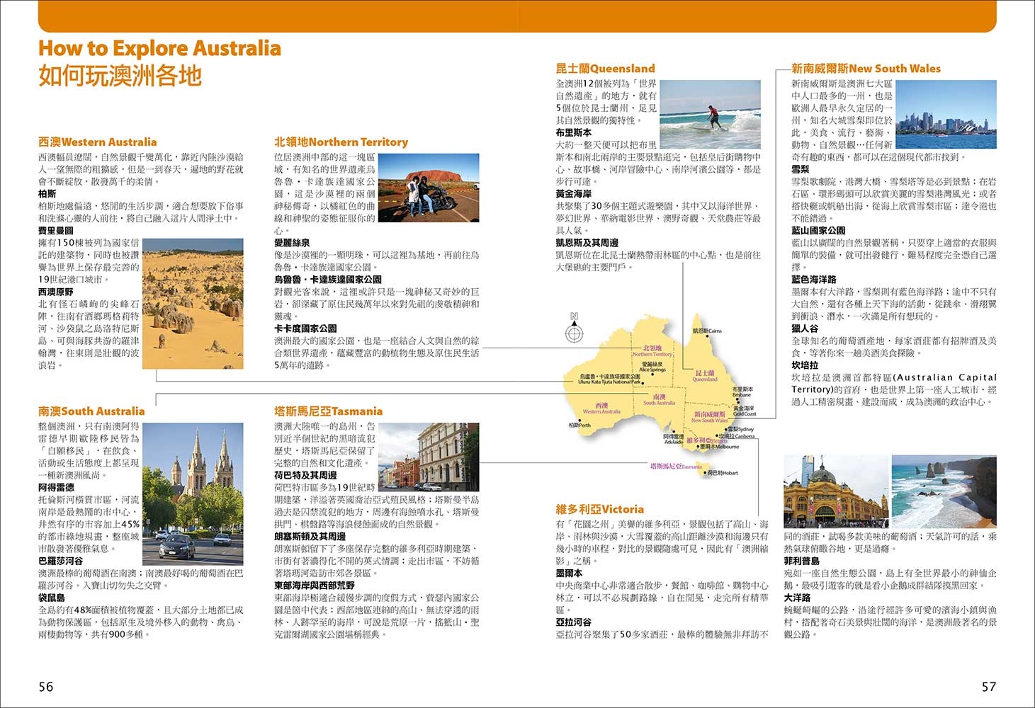 以專業的眼光,歸納出不容錯過的「澳洲之最」,讓旅遊者即使時間非常倉促有限,也能抓到重點玩出箇中真味。