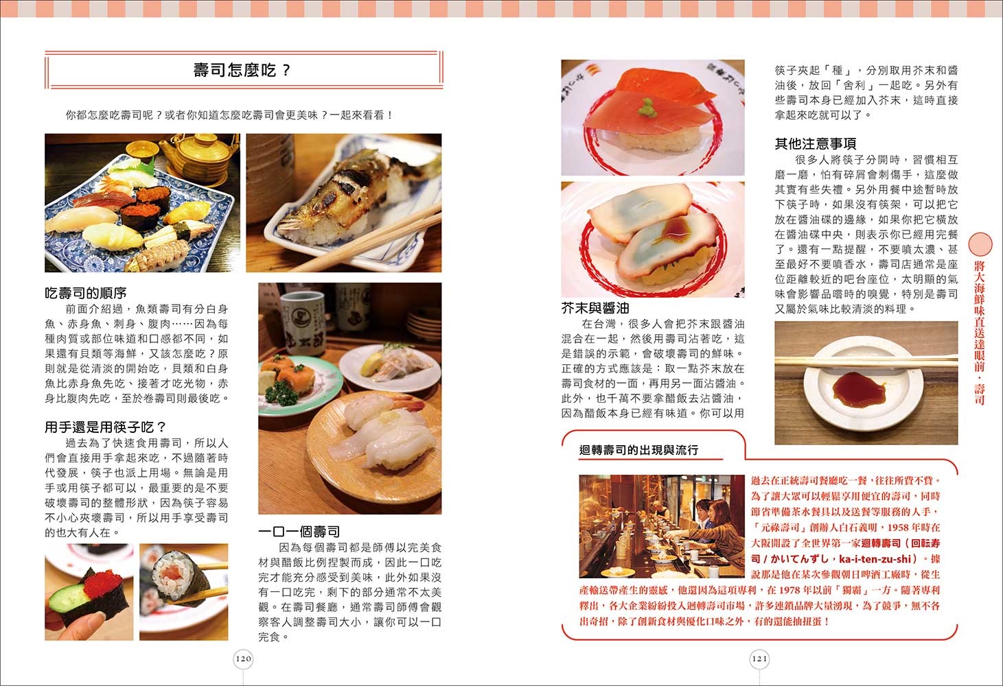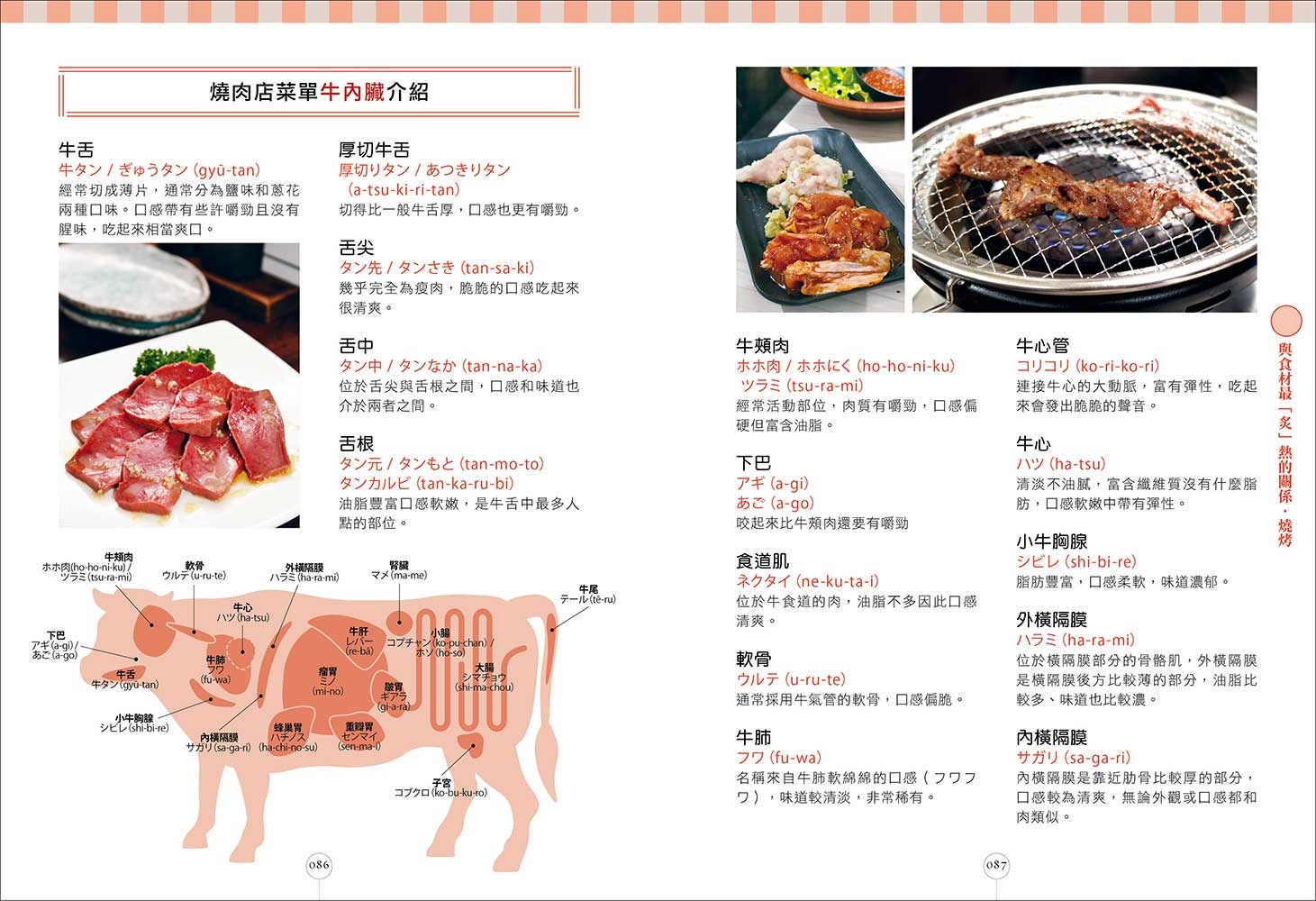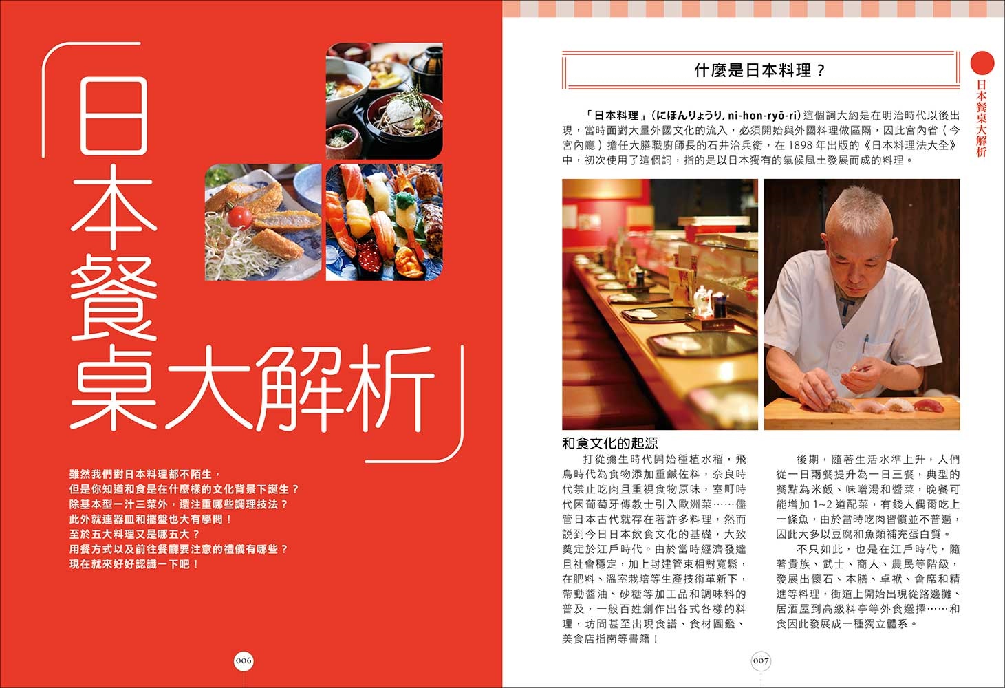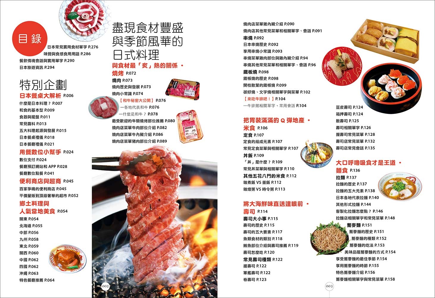 現在只要透過這本書,就能讓你以圖解方式進出餐廳彷彿自家廚房,不必看圖說故事、不再需比手畫腳。透過實際採訪拍攝的圖片與文字介紹,同時附上中、日文對照名稱(與發音)或實用會話(日文),就算說不出口,也能輕鬆手指點餐!