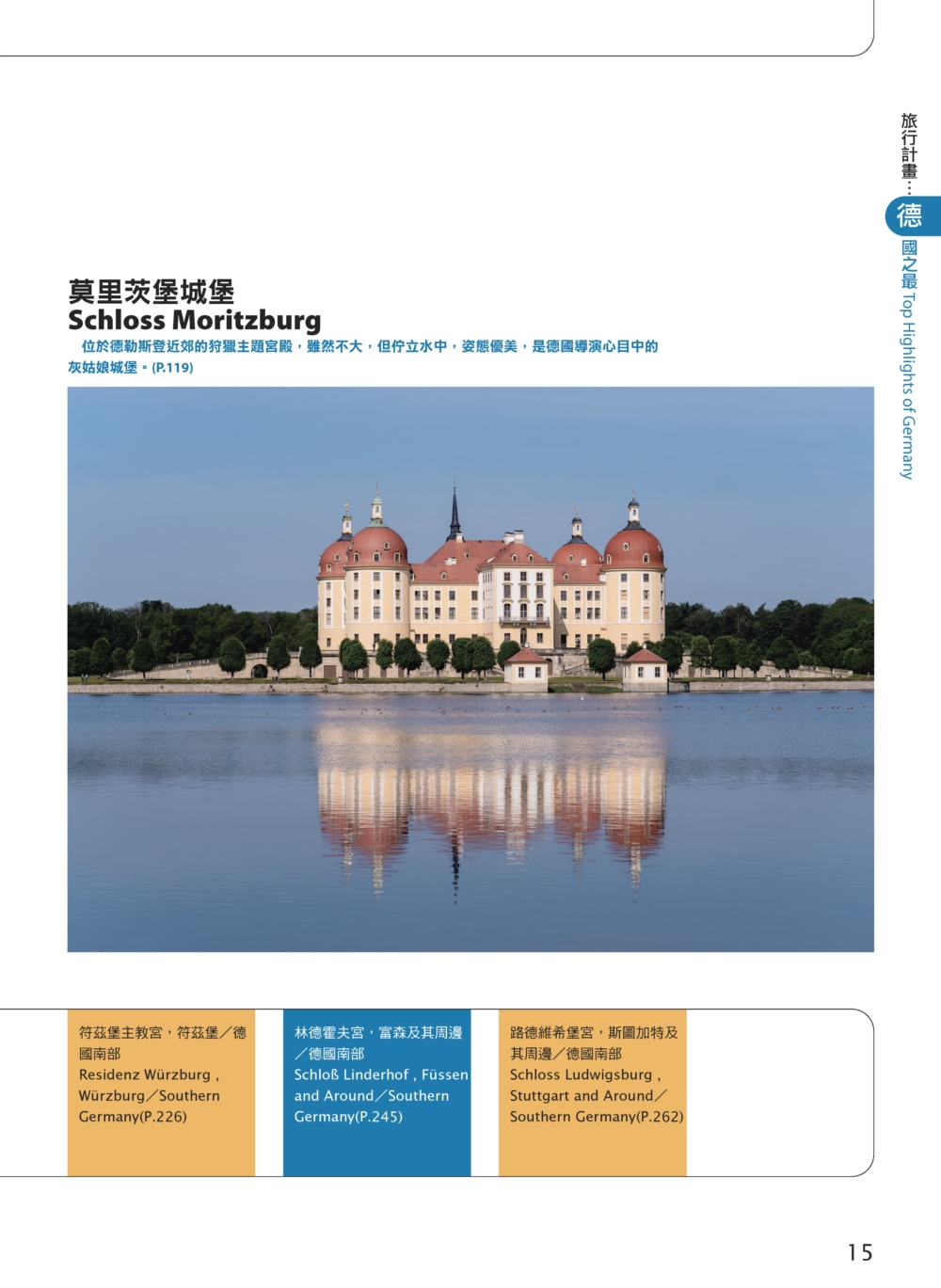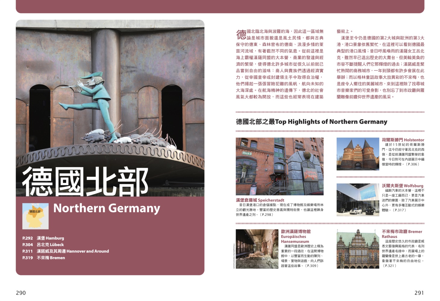 以專業的眼光,歸納出「德國之最」、德國好味、德國好買等主題,讓旅遊者出發前即可做好規劃,不會錯過當地的美食體驗,而且有效率地買好紀念品、伴手禮等。P.5 歡迎來到德國 Welcome to Germany