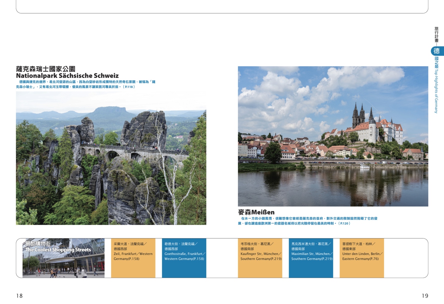 新版的德國New Action,除了原有的相關基礎資訊具足外,更進一步探索大家相對陌生的德東地區,包括柏林、德勒斯登、萊比錫、麥森等重要城鎮,好讓即使是曾經數度造訪德國、對德國熟門熟路的遊客,也能感覺到耳目一新。