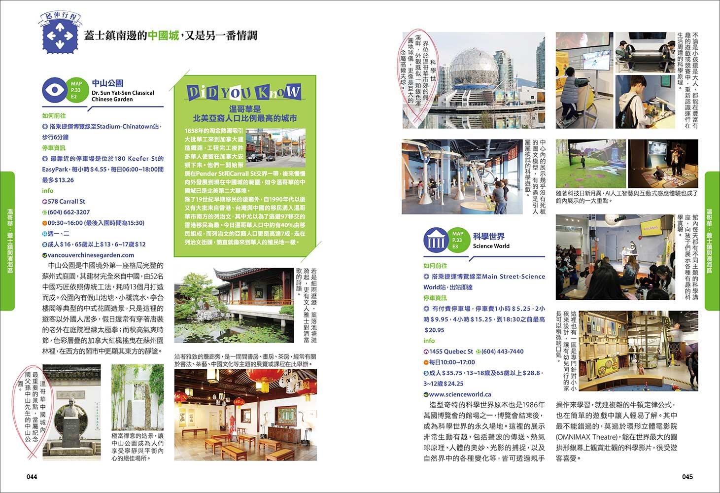 蒐羅加拿大各大城市所有必遊景點,每個景點都有詳細的介紹與有趣的典故,另外還有城內知名餐廳、人氣美食與特色商店大集合