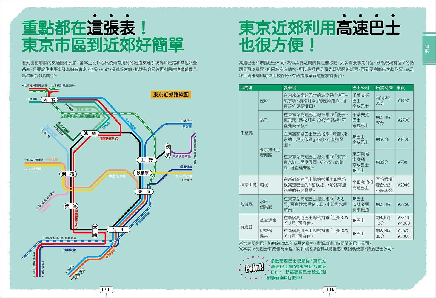 5. 一次K.O複雜交通、票券:從新幹線、JR、私鐵,到長途巴士、公車,以及各方PASS,龐大資料通通圖表式整理,搭配超詳盡解說和分析,協助你以划算、省時、高CP值的方式暢遊東日本。