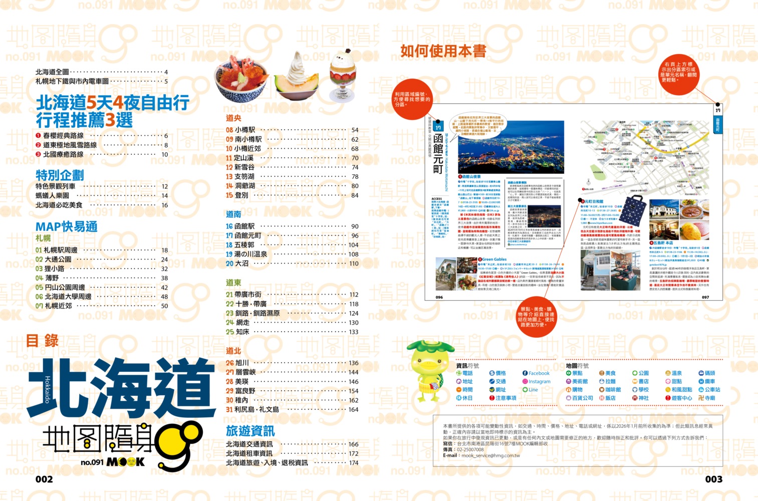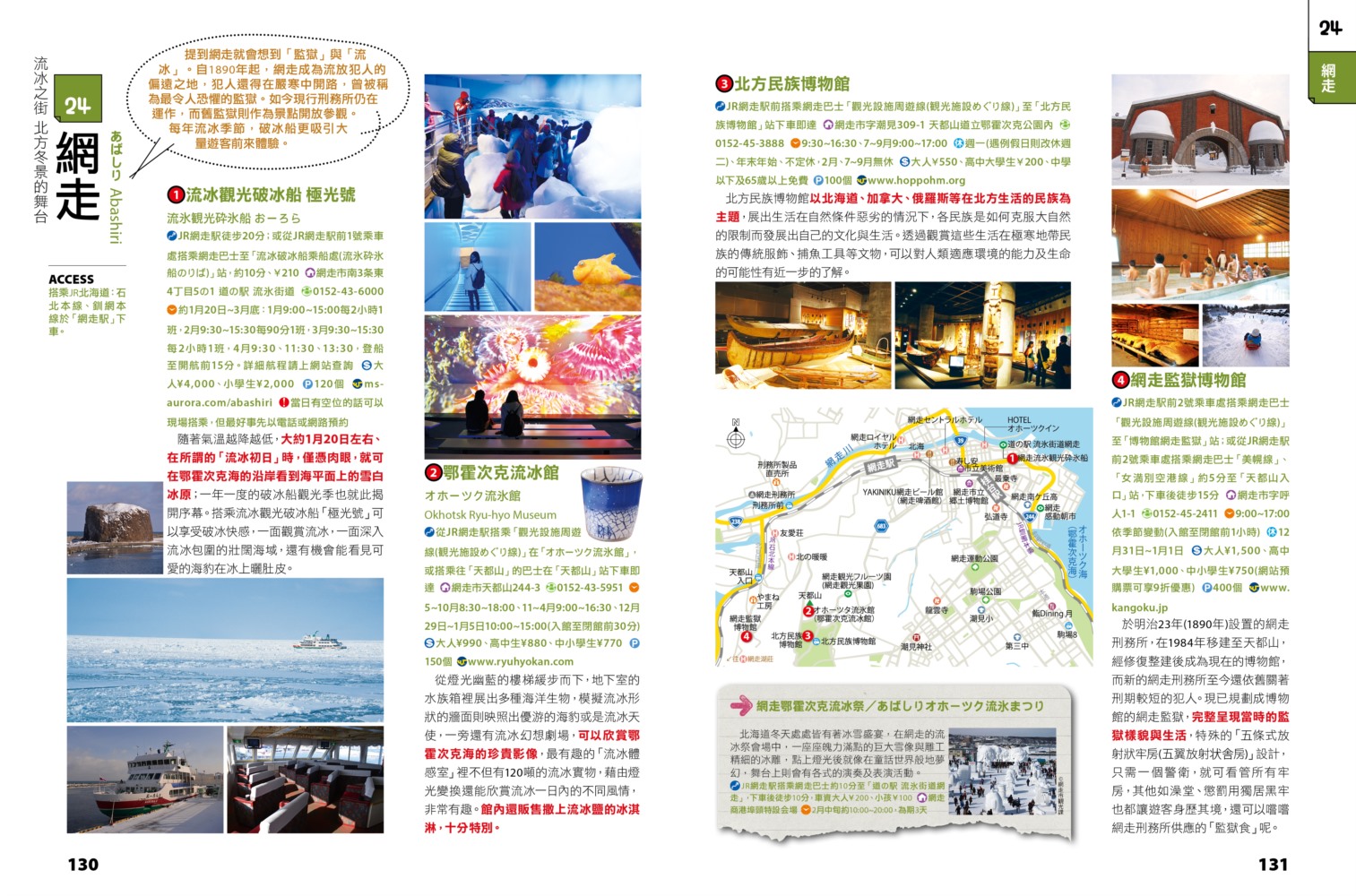 每個地區皆附清楚地圖,景點、車站、人氣店家一目了然,第一次玩北海道也能安心上路。